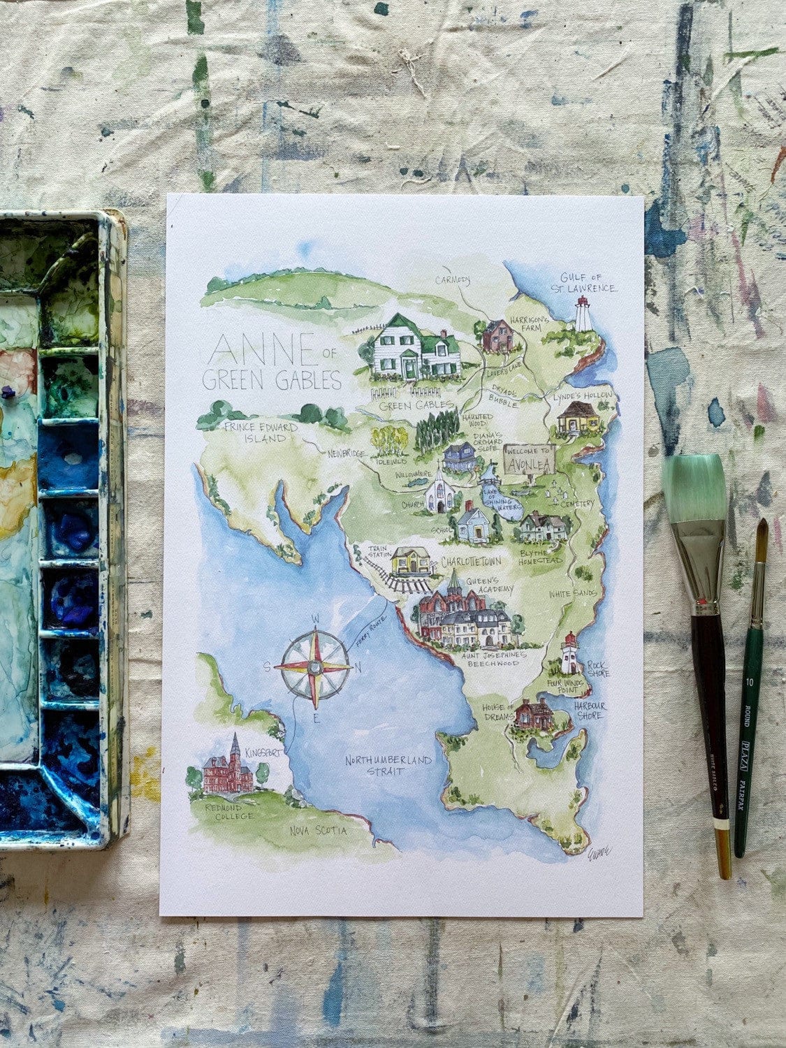 Anne of Green Gables and Avonlea Watercolor Map Art Print Etsy UK