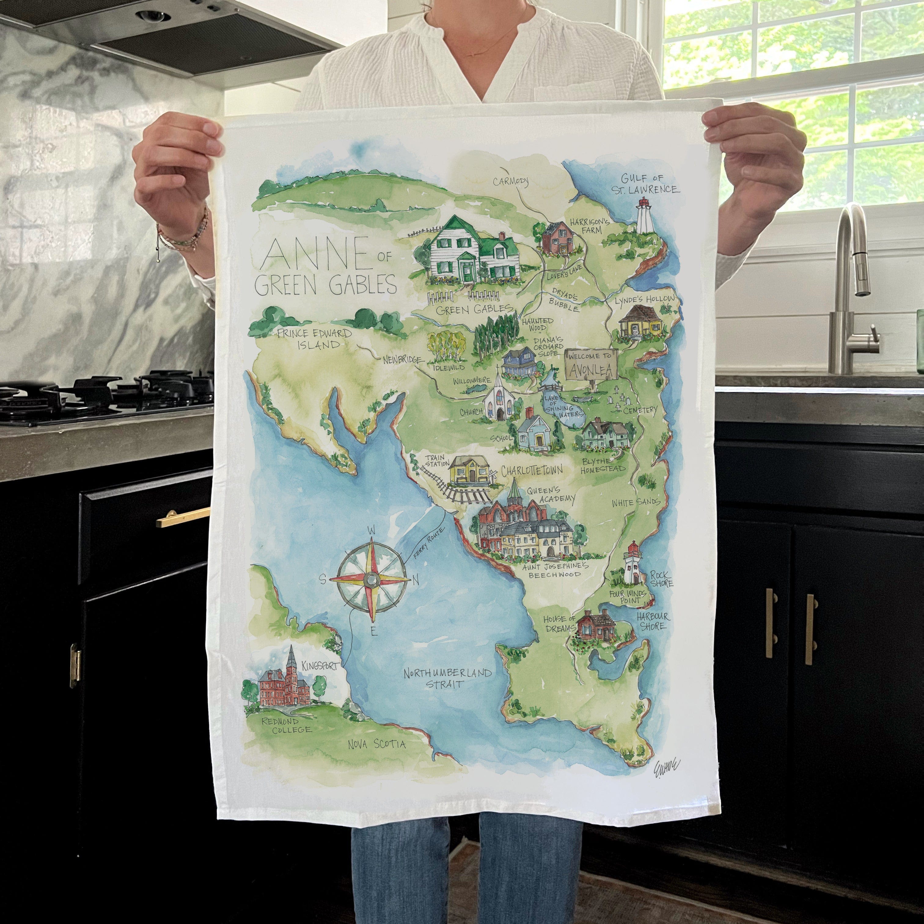 Anne of Green Gables Story Map” Tea Towel โ Elizabeth Wade Studio