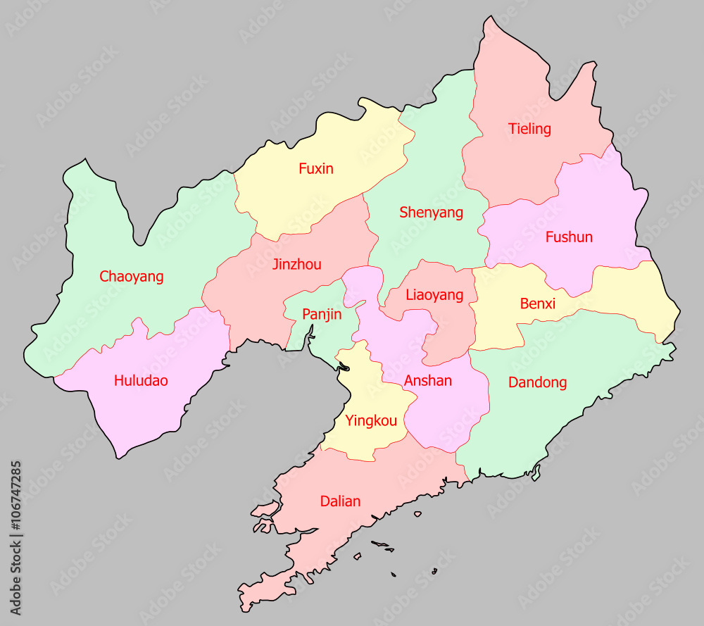 Map of Liaoning Province, China Stock Vector | Adobe Stock