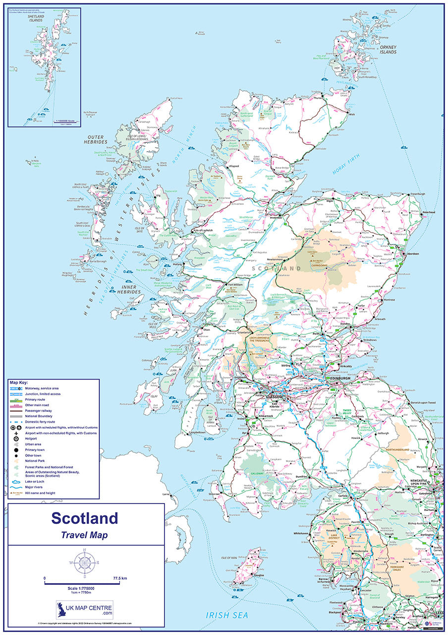 Compact Scotland Travel Map Digital Download โ ukmaps.co.uk